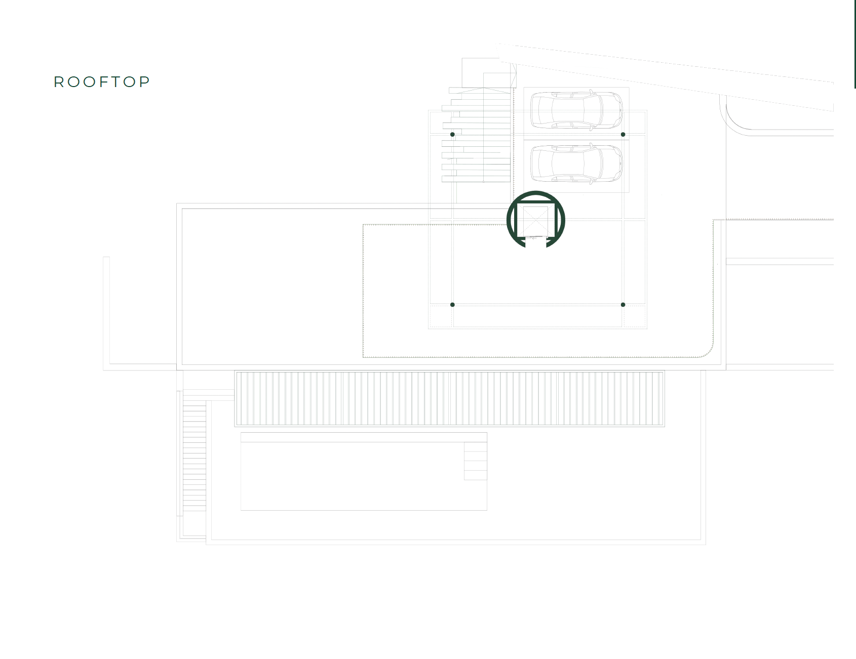 Practical features are carefully integrated into the lower floor, including a secure garage with space for four vehicles and additional storage. A signature central lift connects all floors, including the rooftop terrace, reinforcing ease of movement and long-term functionality. At the top of the property, the rooftop solarium offers a 360-degree deck complete with fire pit and chill-out area, providing elevated views across the hills and towards the sea.